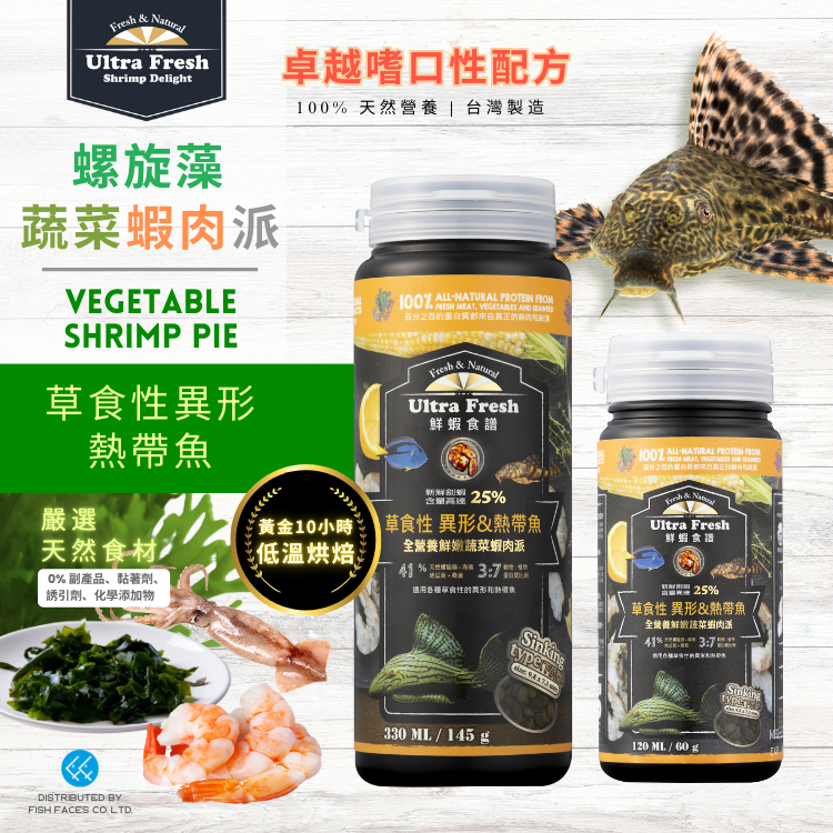 ULTRA FRESH 螺旋藻鮮嫩蔬菜蝦肉派 (草食性異形/熱帶魚) 60g/145g #86061 #86062